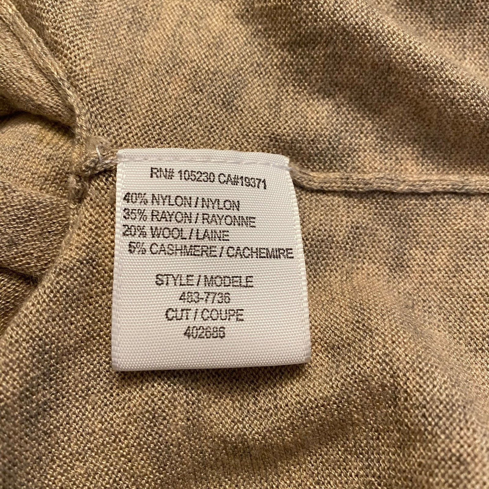 40% Nylon 35% Rayon 20% Wool 5% Cashmere